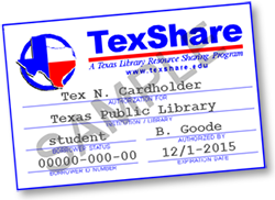 As a member of the Joe Barnhart Bee County Library, you are eligible to receive a TexShare Card which gives you additional borrowing privileges at many public and academic libraries in the state of Texas. Your TexShare Card must be renewed annually. Ask at the circulation desk for more information.